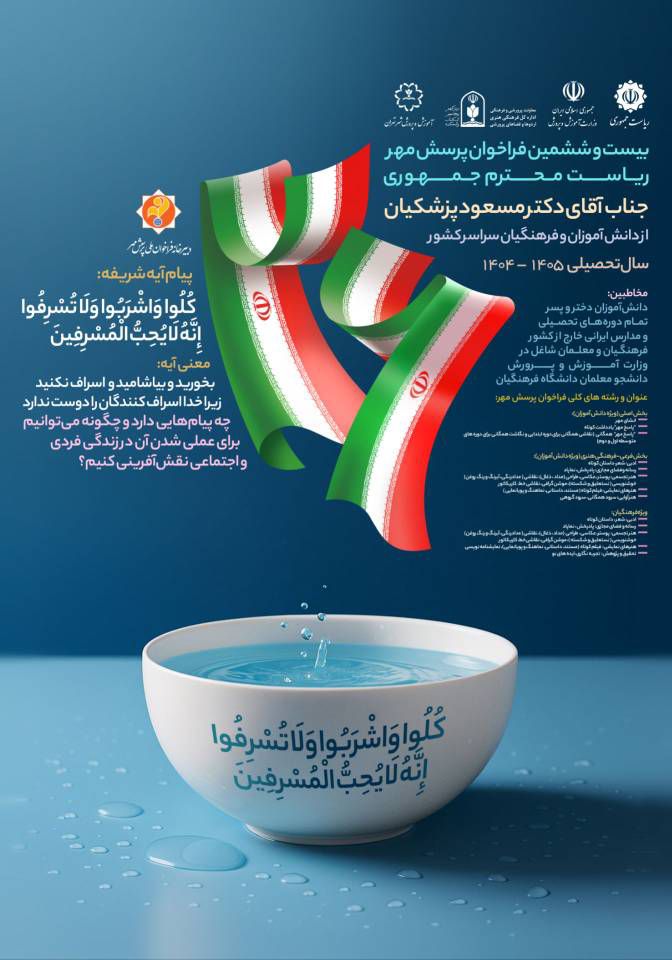 بیستوششمین فراخوان پرسش مهر ریاست جمهوری از دانشآموزان و فرهنگیان سراسر کشور در سال تحصیلی ۱۴۰۴ – ۱۴۰۵ ظهر امروز پنجشنبه اول آبان ماه، با حضور علیرضا کاظمی وزیر آموزش و پرورش، اسماعیل بحریزاده مشاور و مدیرکل حوزه وزارتی، صادق حسینزاده ملکی معاون پرورشی وزارت آموزش و پرورش و جمعی از مدیران و معاونین پرورشی استانهای کشور رونمایی شد.