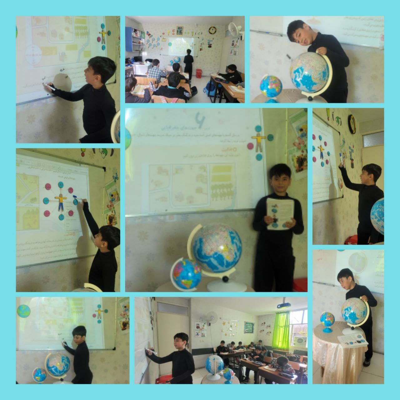 امروز در کلاس مطالعات اجتماعی، محمدحسین عابدینی عزیزم به معرفی درس ششم با عنوان جهتهای اصلی و فرعی پرداخت. او با دقت و تسلط، دربارهی چهار جهت اصلی (شمال، جنوب، شرق، غرب) و جهتهای فرعی توضیح داد.