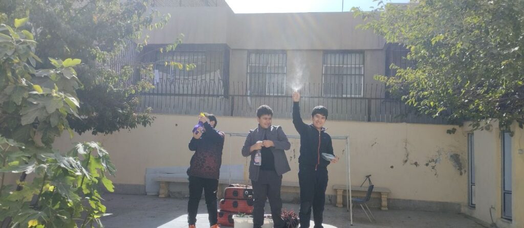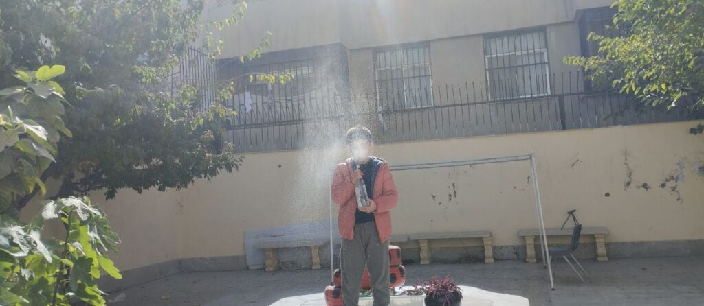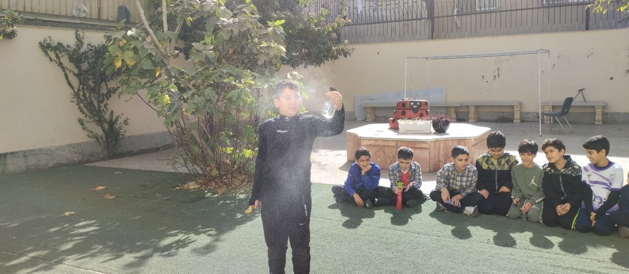 برای انجام این کاوش پسران گل با آوردن آب پاش و در یک روز آفتابی با رعایت شرایط تشکیل رنگین کمان سعی کردند رنگین کمان کوچکی بسازند.