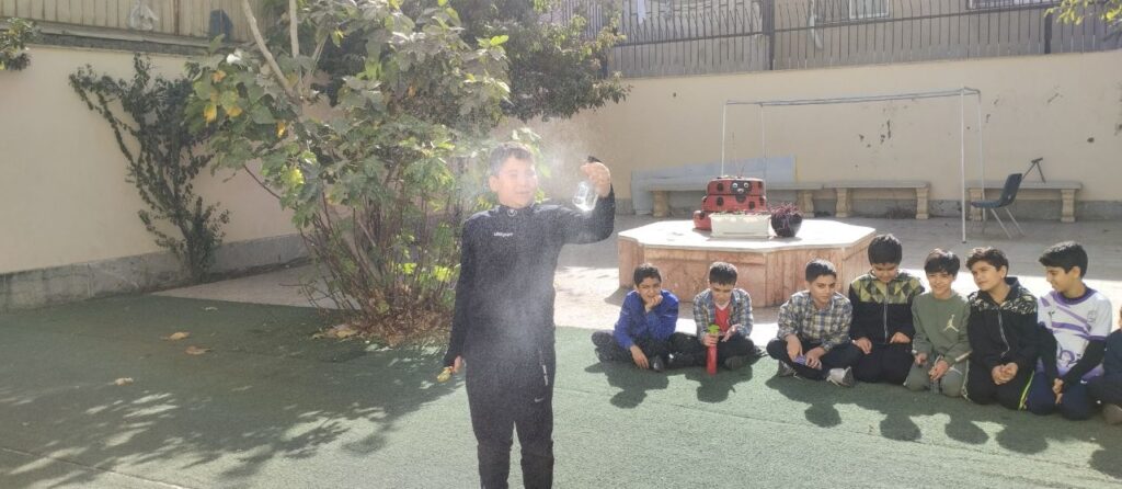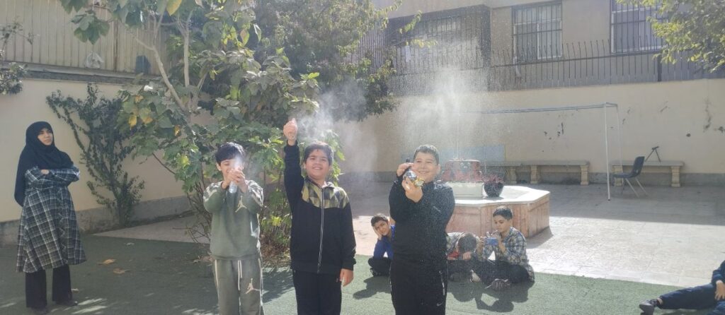 دانش آموزان عزیز و خوب کلاس پنجم در درس سوم علوم یاد گرفتند که با قطرات آب معلق در هوا می توانند رنگین کمان بسازند