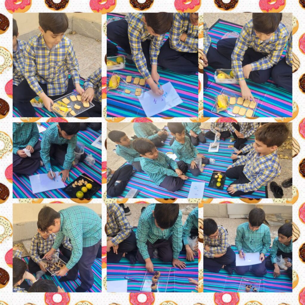 هر دانشآموز خوراکیهای خودش را با دوستانش تقسیم کرد و هنگام تقسیم، با عددهای مخلوط آشنا شد. 🍎🍰🍪